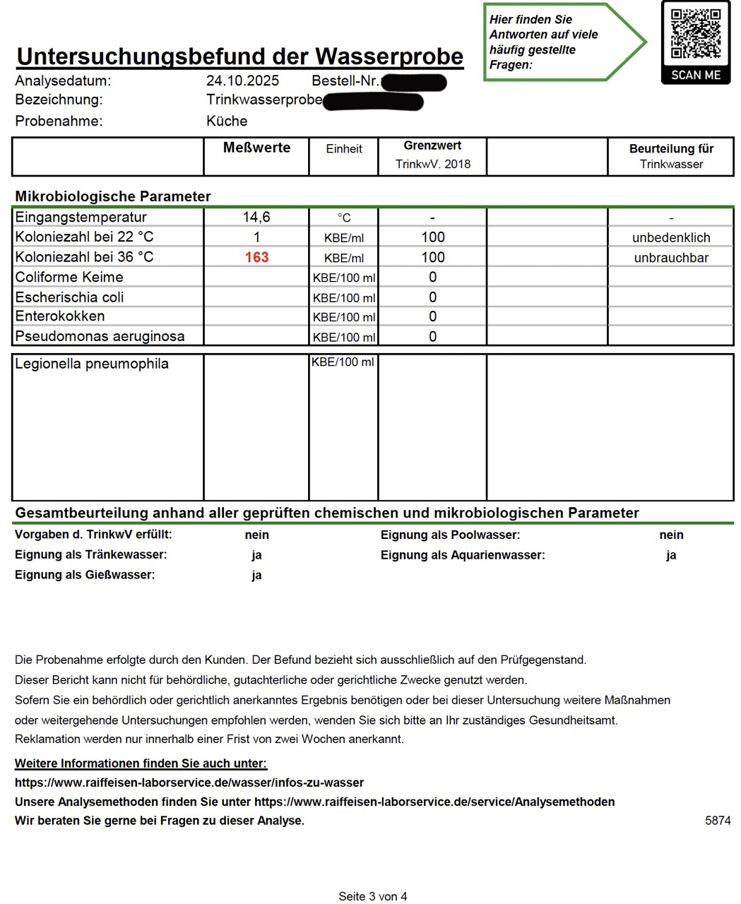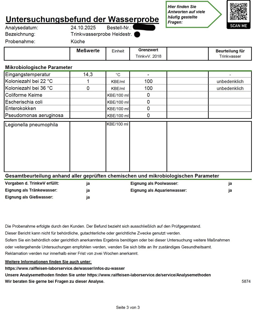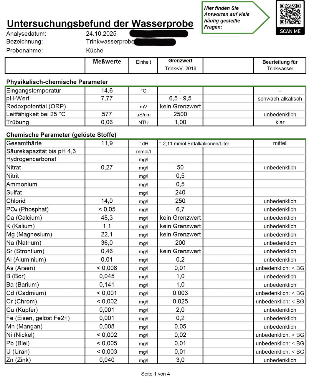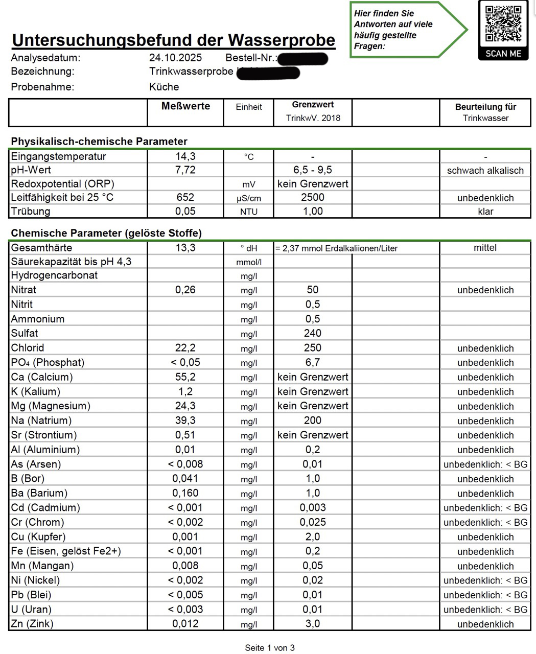 Die gemessenen Konzentrationen sind damit entweder extrem gering oder sogar unterhalb der analytischen Nachweisgrenze. Insgesamt bestätigen die Laborbefunde eine sehr gute Trinkwasserqualität an beiden untersuchten Adressen.“