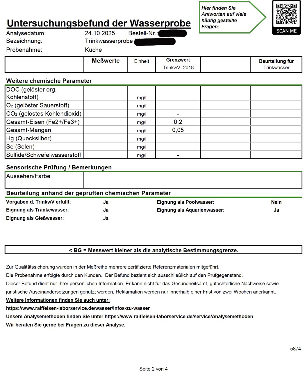 • Kupfer: 0,001 mg/l, Grenzwert 2,0 mg/l